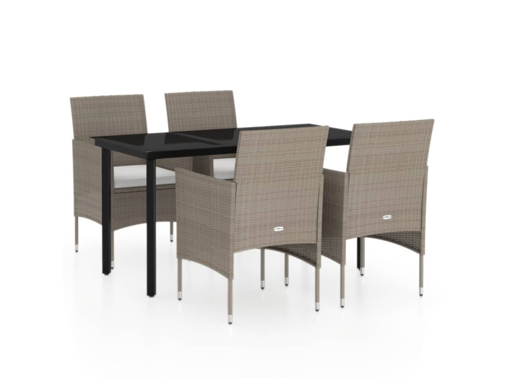 5dílný zahradní jídelní set s poduškami béžový a černý 3099295