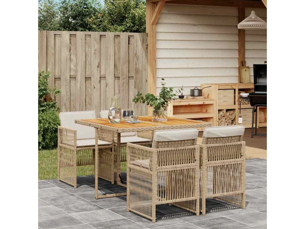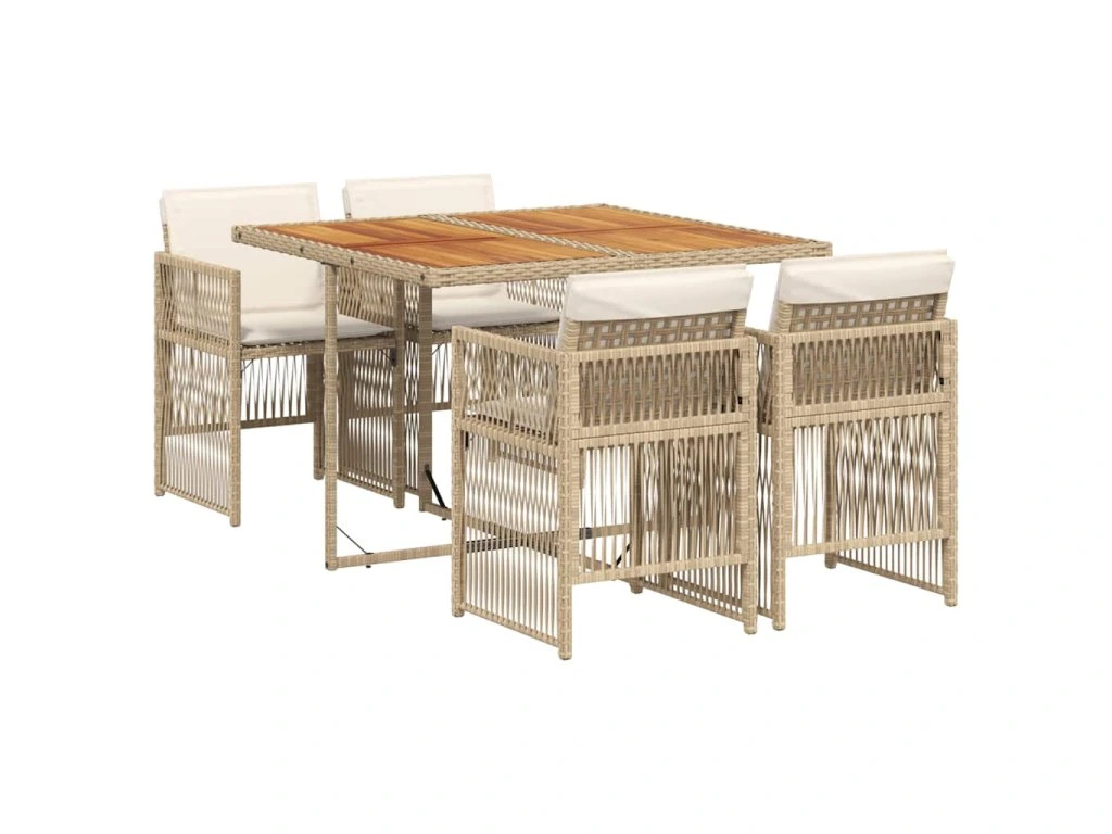 5dílný zahradní jídelní set s poduškami béžový polyratan 3210904