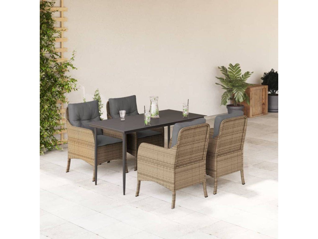 5dílný zahradní jídelní set s poduškami béžový polyratan 3211978