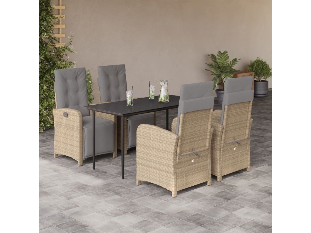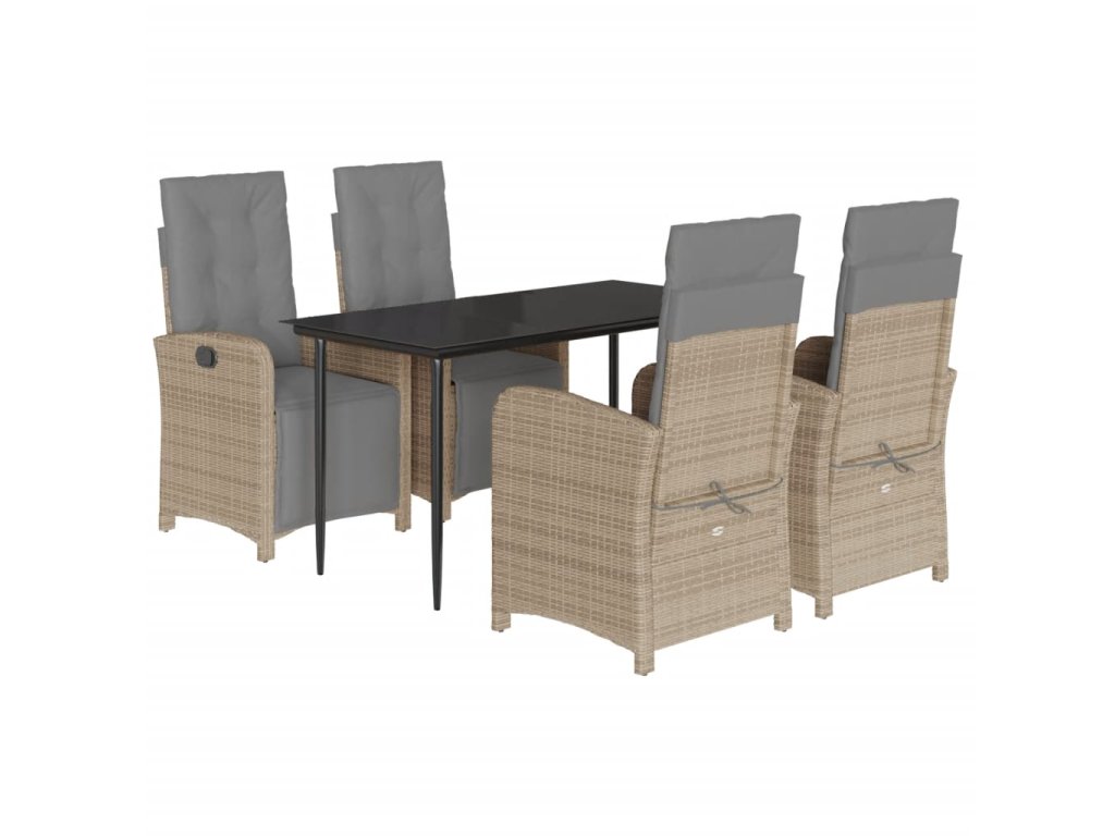 5dílný zahradní jídelní set s poduškami béžový polyratan 3212586
