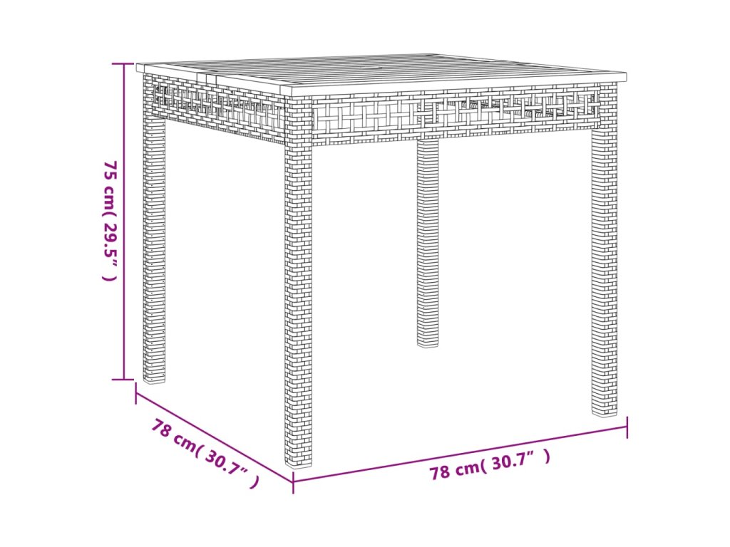 - Stabilní a snadno čistitelná stolní deska: Tento zahradní stolek má desku z akáciového dřeva, která je stabilní, odolná a snadno se čistí vlhkým hadříkem.