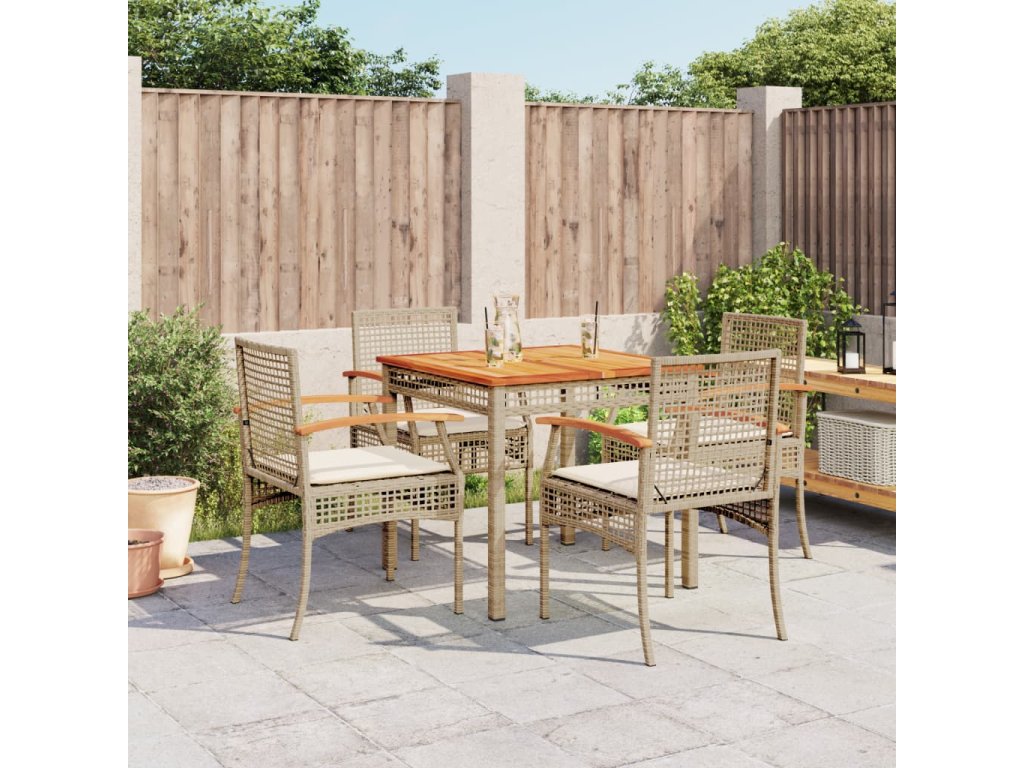 5dílný zahradní jídelní set s poduškami béžový polyratan 3213579