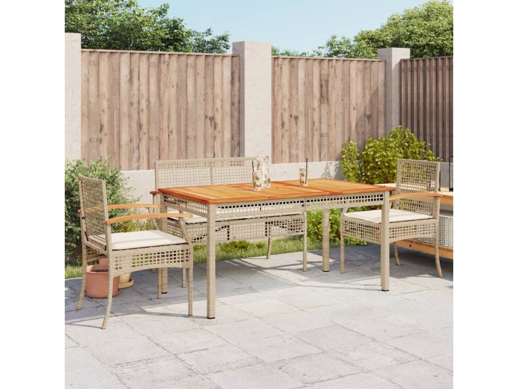 - Materiál: PE ratan, práškově lakovaná ocel, masivní akáciové dřevo s olejovou povrchovou úpravou