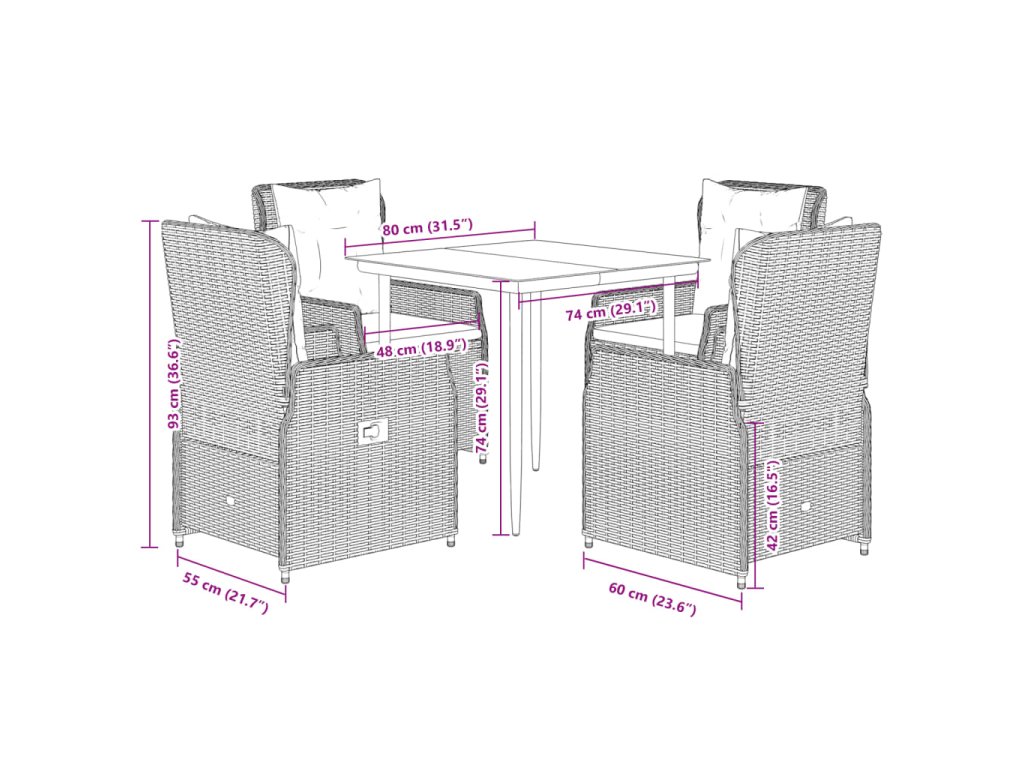 - Rozměry: 80 x 80 x 74 cm (D x Š x V)