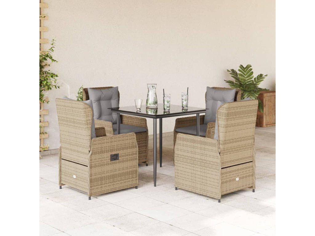 5dílný zahradní jídelní set s poduškami béžový polyratan 3262869