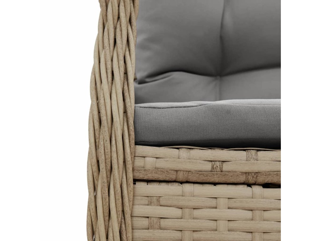 - Odolný materiál: PE ratan neboli polyratan je pevný syntetický materiál s nízkými nároky na údržbu, který vypadá jako přírodní ratan. Je lehký, snadno se čistí a běžně se používá pro venkovní nábytek díky své dlouhé životnosti a odolnosti vůči povětrnostním vlivům.