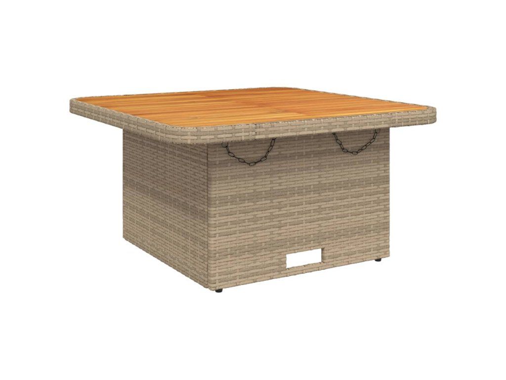 - Stabilní a snadno čistitelná stolní deska: Tento zahradní stolek má desku z akáciového dřeva, která je stabilní, odolná a snadno se čistí vlhkým hadříkem.