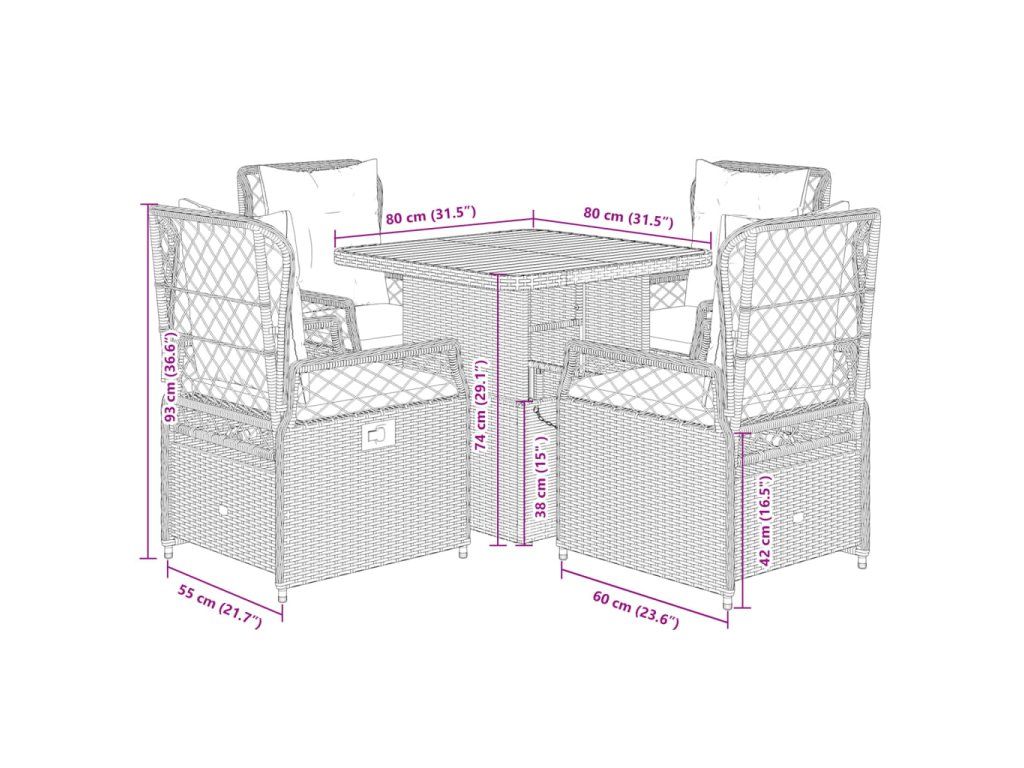 - Rozměry: 80 x 80 x 40/71 cm (D x Š x V)