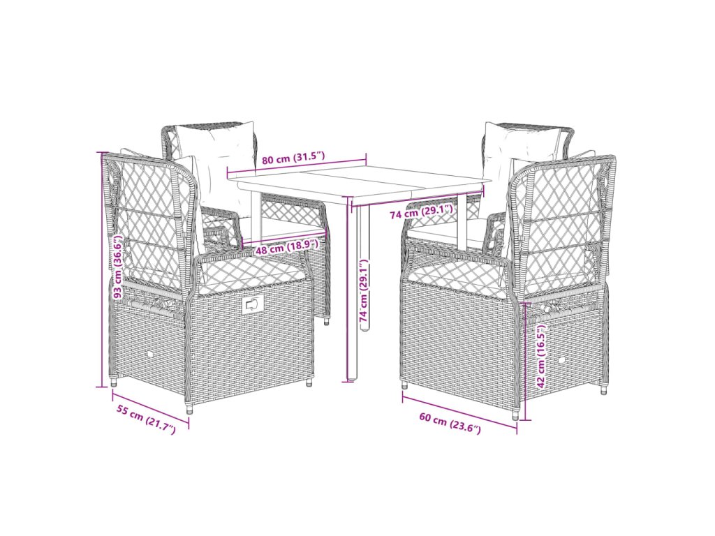 - Rozměry: 80 x 80 x 74 cm (D x Š x V)
