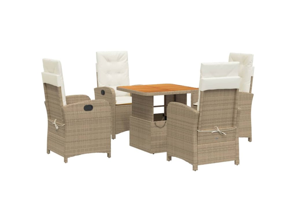 5dílný zahradní jídelní set s poduškami béžový polyratan 3277350