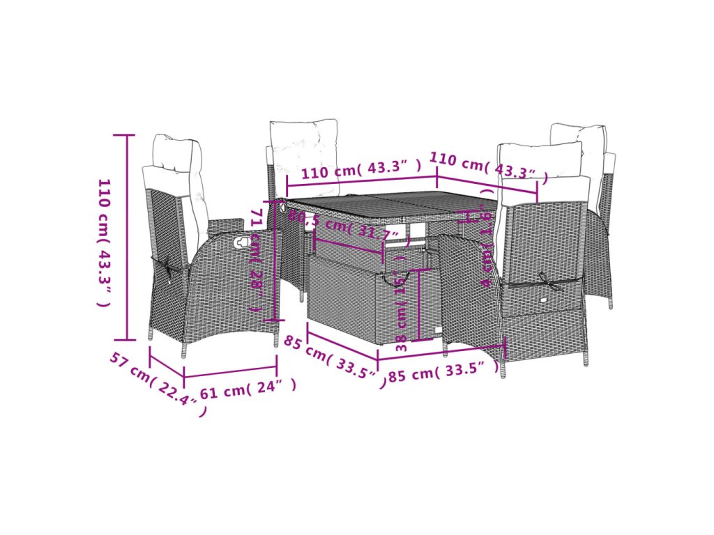 - Rozměry stolku: 110 x 110 x 40/71 cm (D x Š x V)