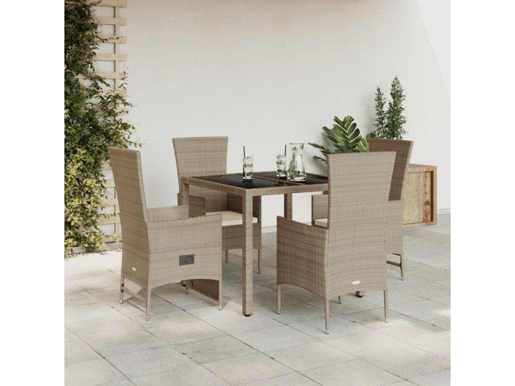 5dílný zahradní jídelní set s poduškami béžový polyratan 3277570