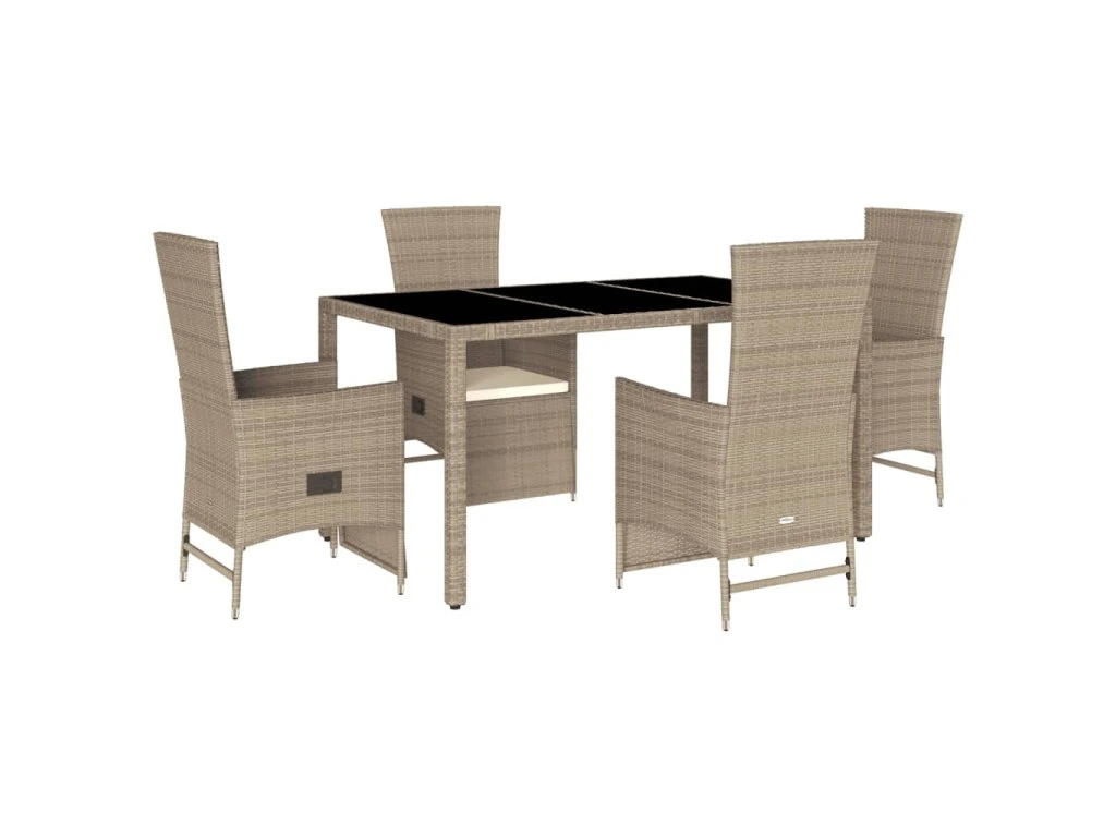 5dílný zahradní jídelní set s poduškami béžový polyratan 3277575