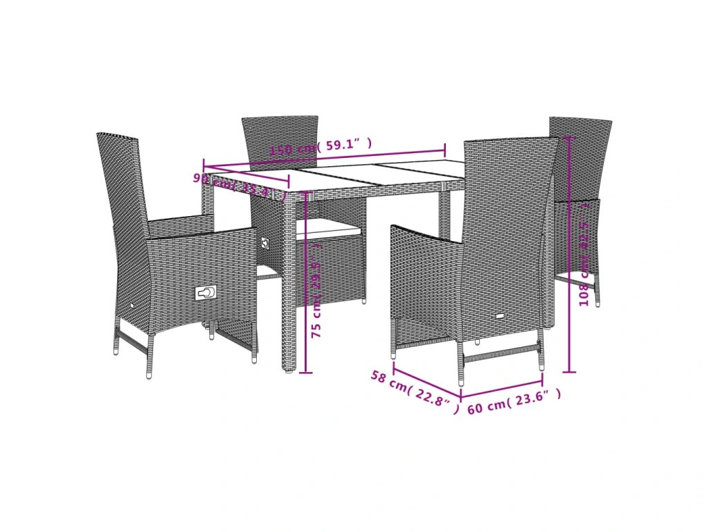 Tento zahradní jídelní set je skvělou volbou pro stolování pod širým nebem nebo jen tak pro odpočívání na zahradě, dvorku či terase.