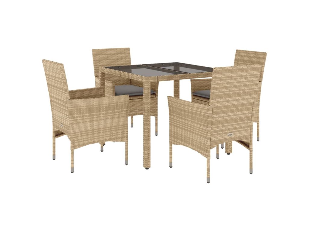 5dílný zahradní jídelní set s poduškami béžový polyratan a sklo 3278562