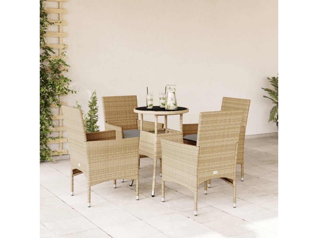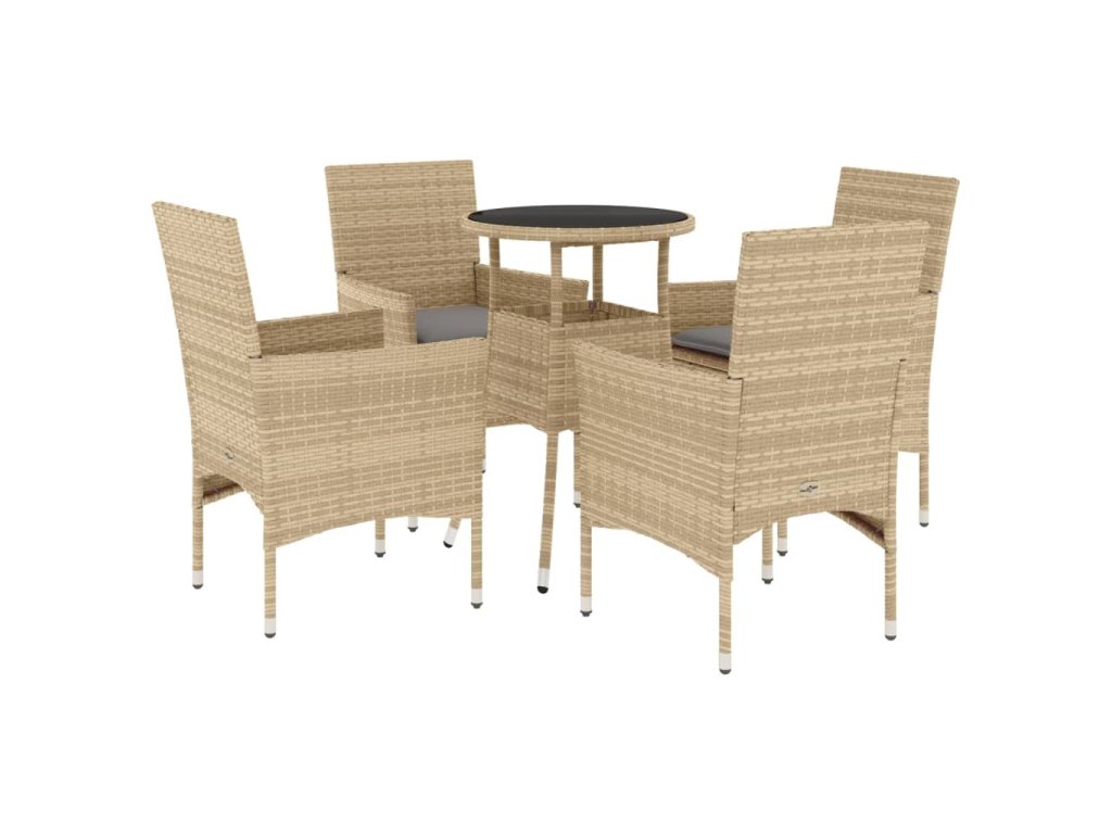5dílný zahradní jídelní set s poduškami béžový polyratan a sklo 3278624