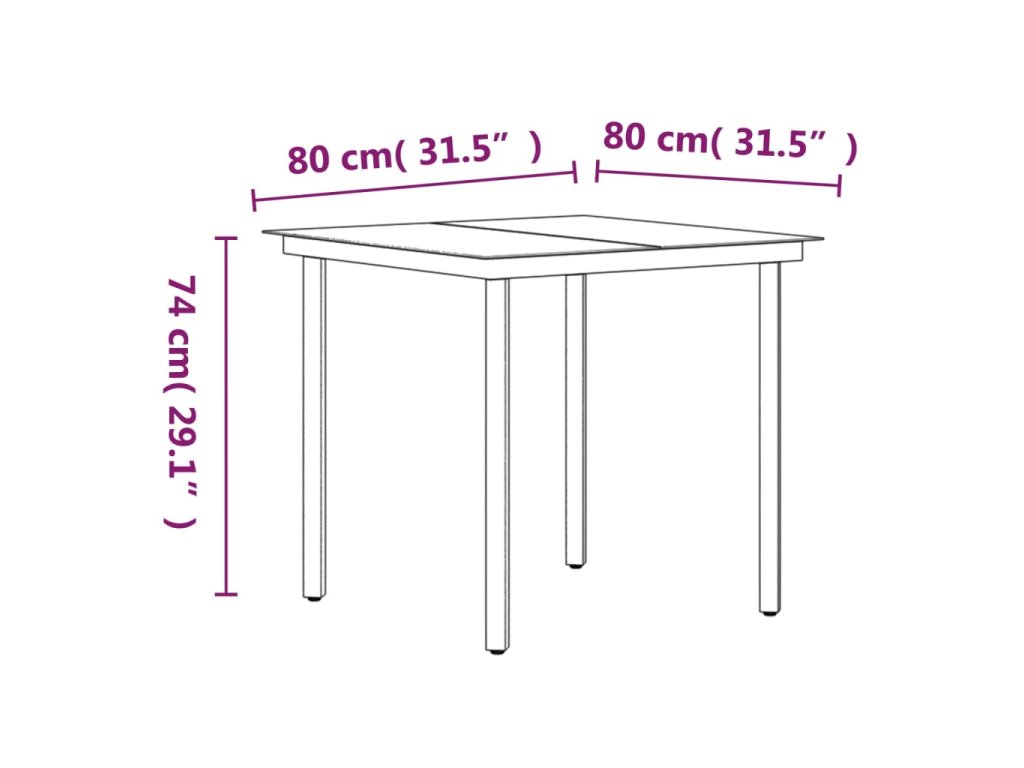 - Rozměry stolu: 80 x 80 x 74 cm (D x Š x V)