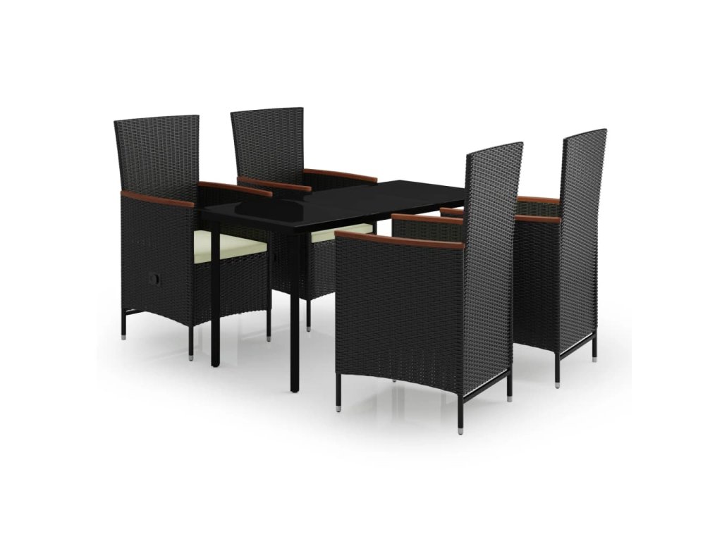5dílný zahradní jídelní set s poduškami černý 3099427