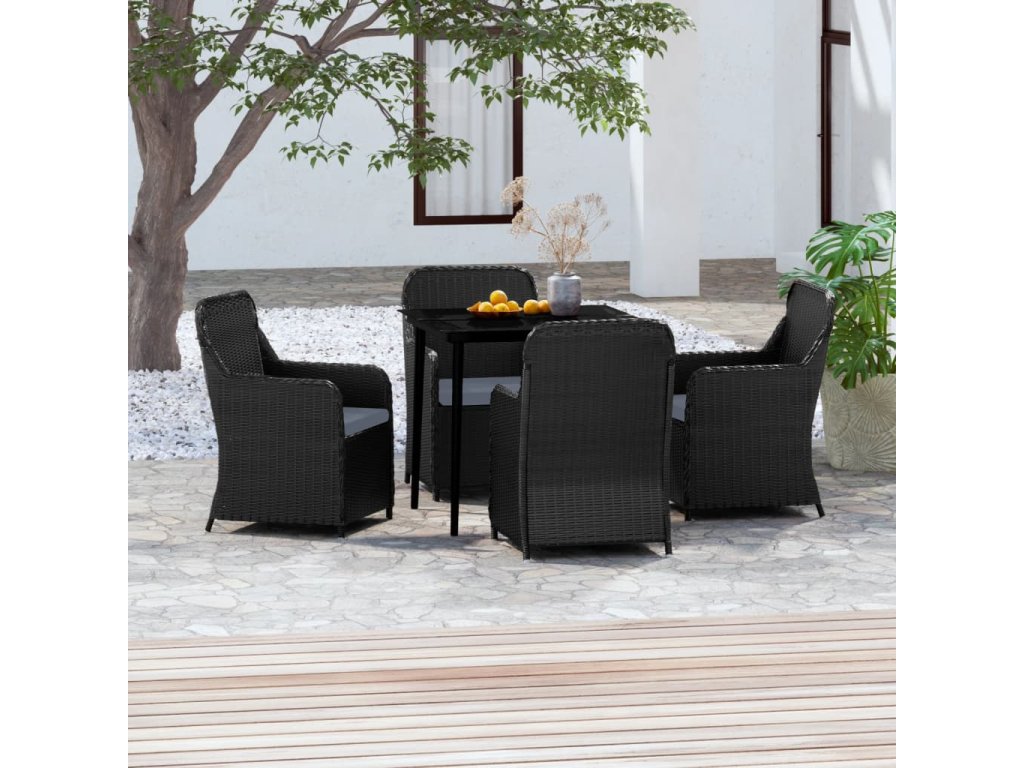 5dílný zahradní jídelní set s poduškami černý 3099542
