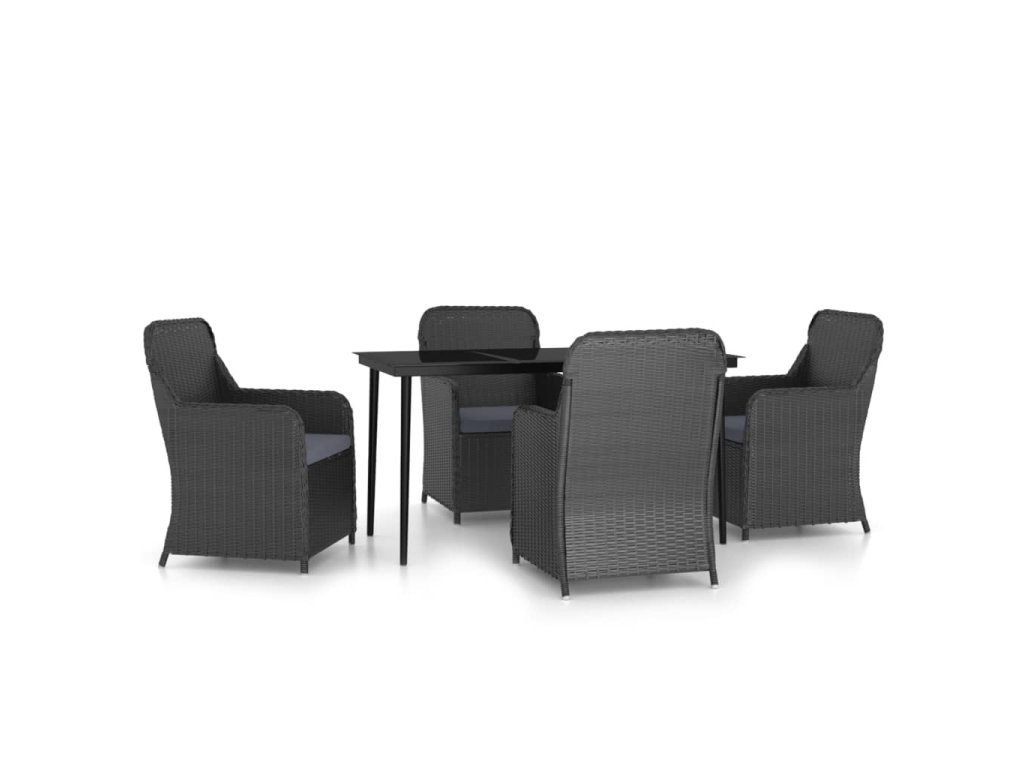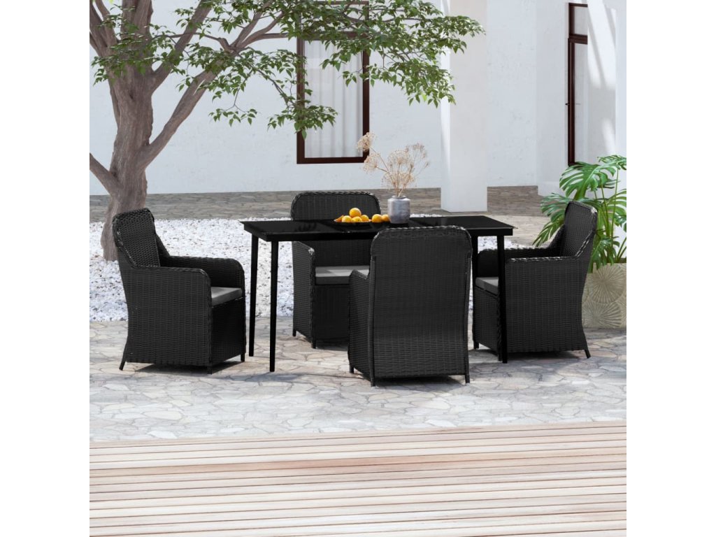 5dílný zahradní jídelní set s poduškami černý 3099543