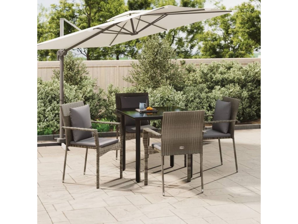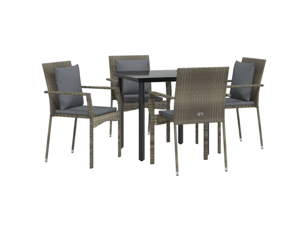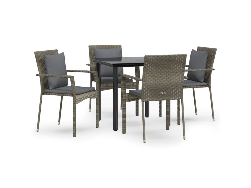 5dílný zahradní jídelní set s poduškami černý a šedý polyratan 3185114