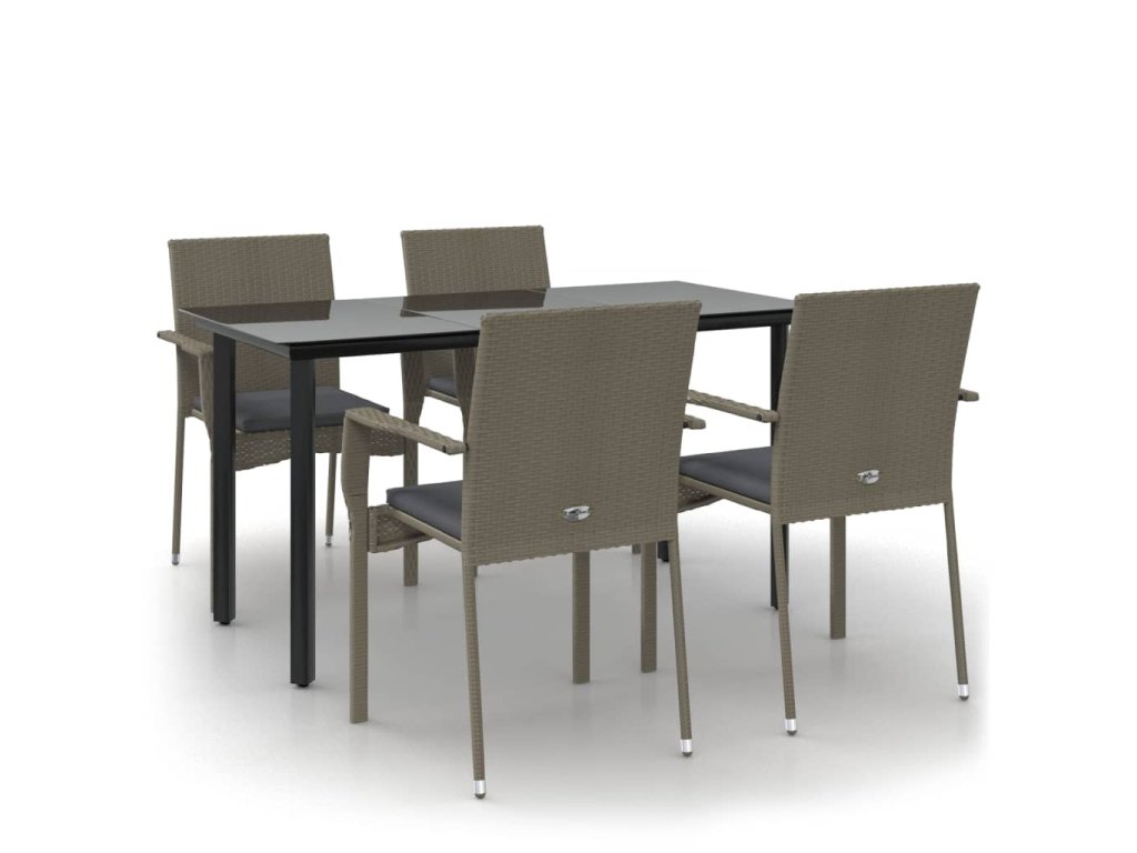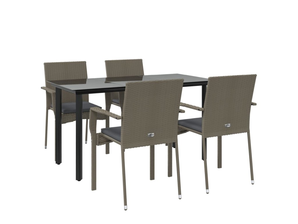 5dílný zahradní jídelní set s poduškami černý a šedý polyratan 3185139