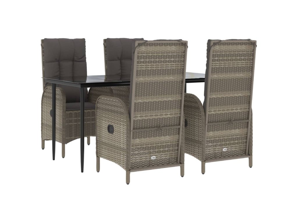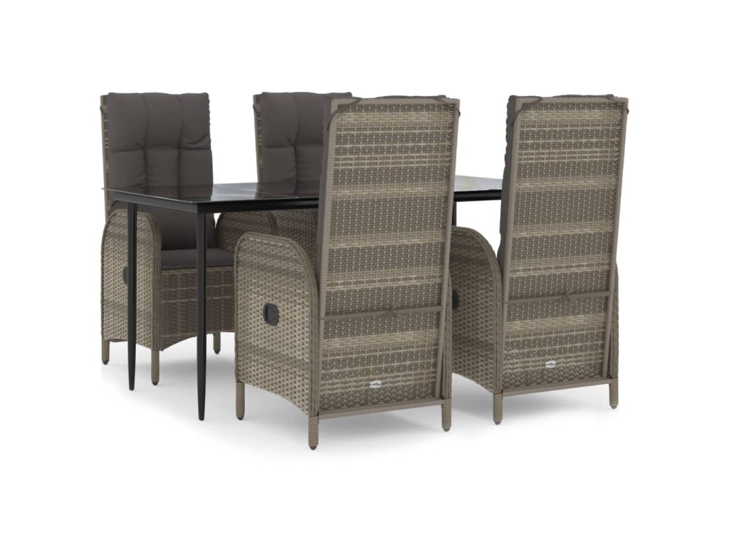 5dílný zahradní jídelní set s poduškami černý a šedý polyratan 3185181