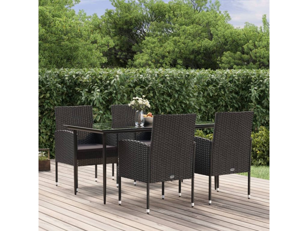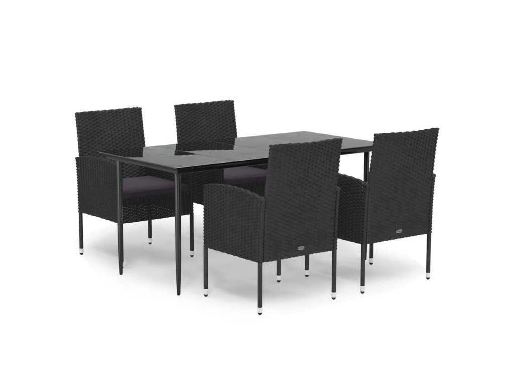 5dílný zahradní jídelní set s poduškami černý polyratan 3156786