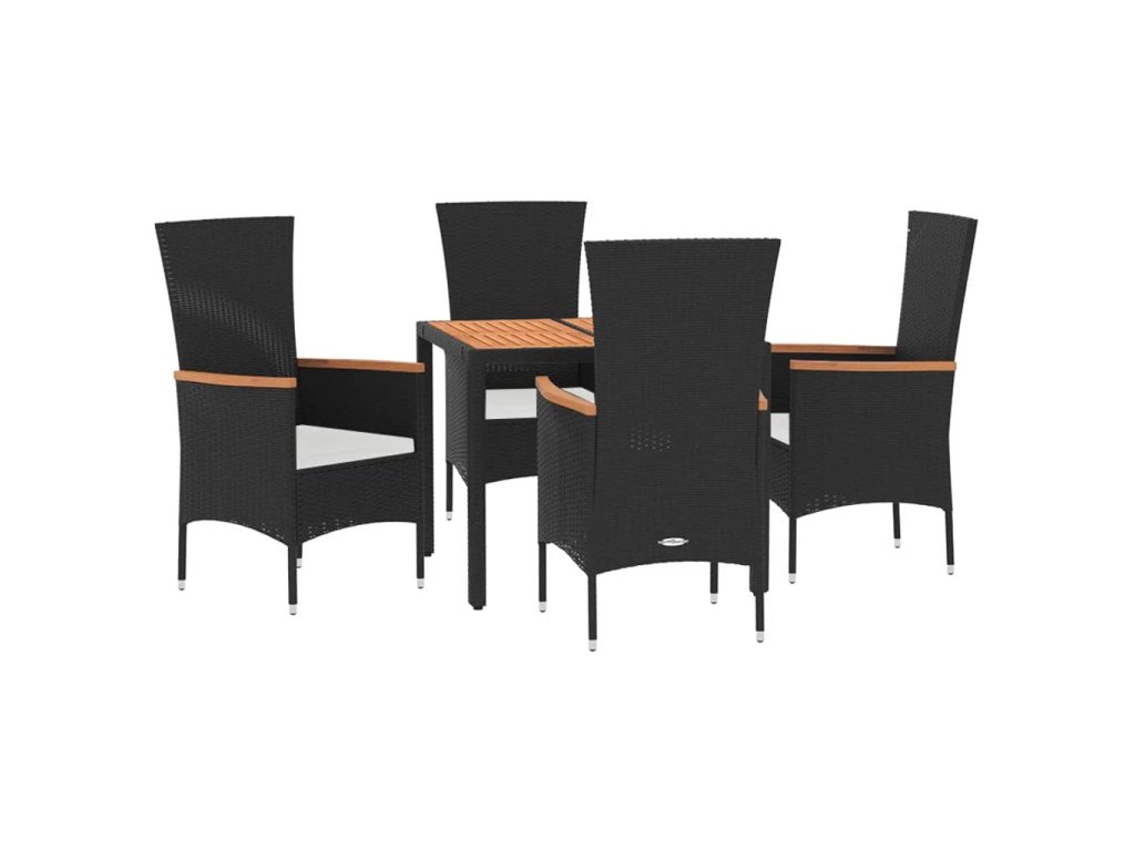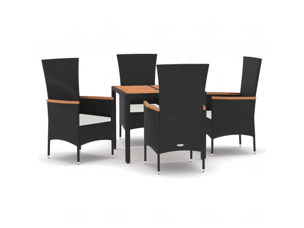 5dílný zahradní jídelní set s poduškami černý polyratan 3157529