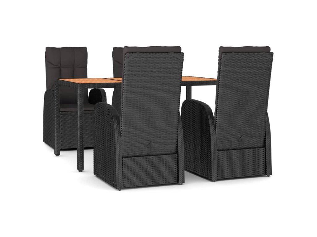 5dílný zahradní jídelní set s poduškami černý polyratan 3157600