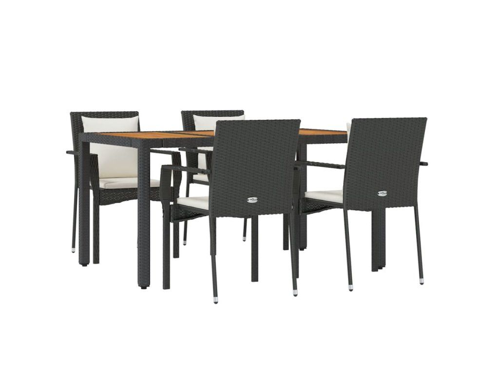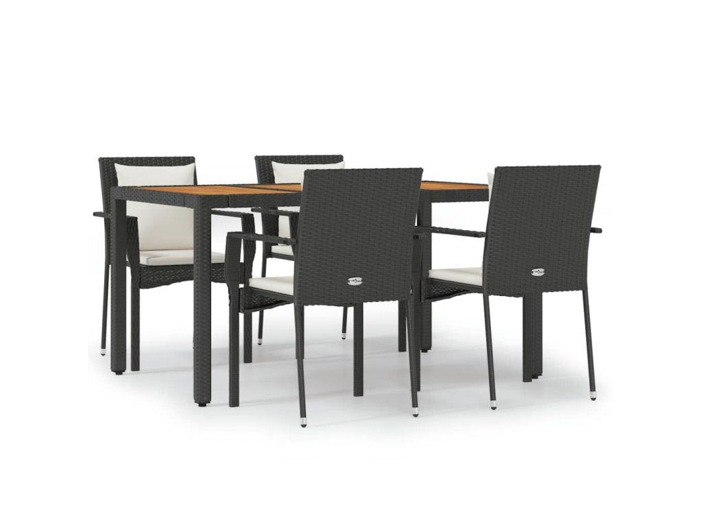 5dílný zahradní jídelní set s poduškami černý polyratan 3157965