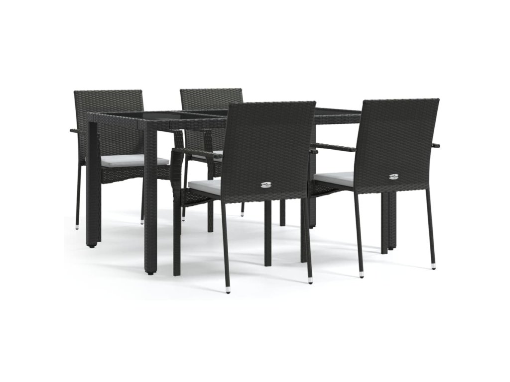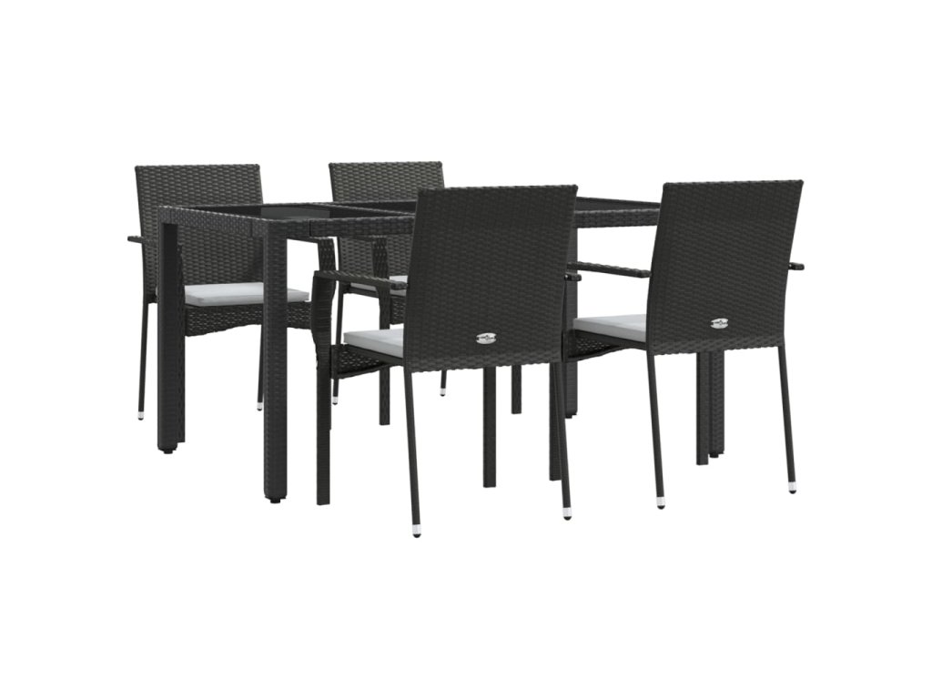 5dílný zahradní jídelní set s poduškami černý polyratan 3184977