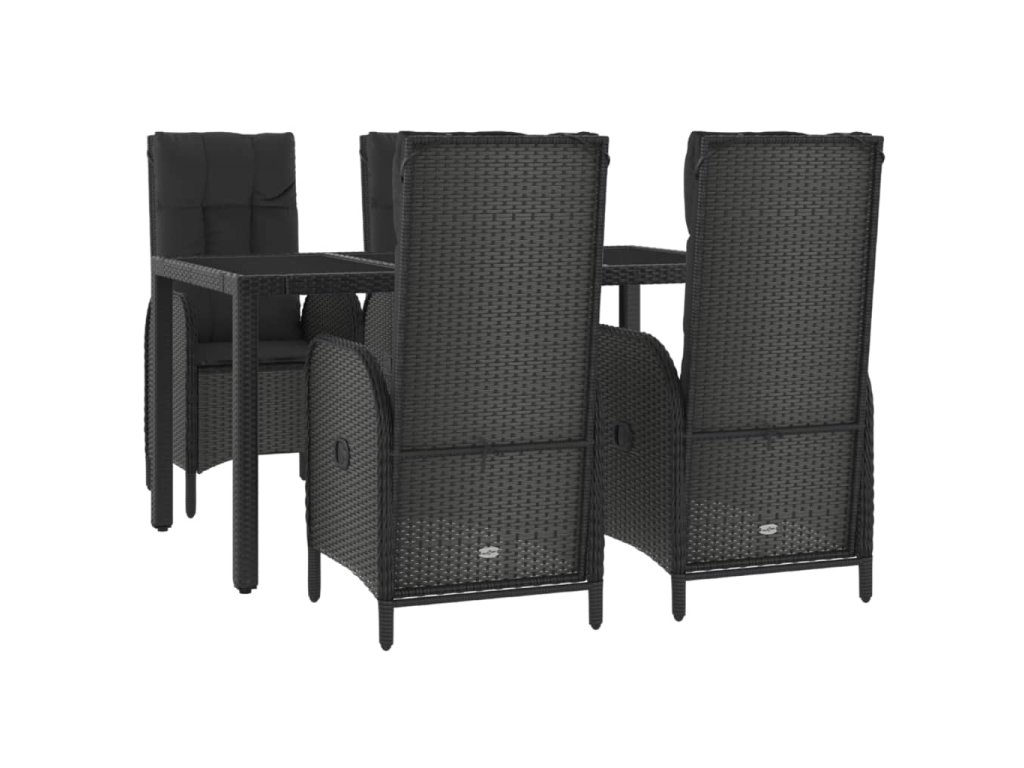 5dílný zahradní jídelní set s poduškami černý polyratan 3185055