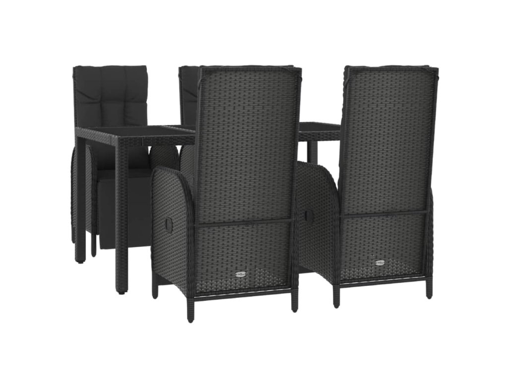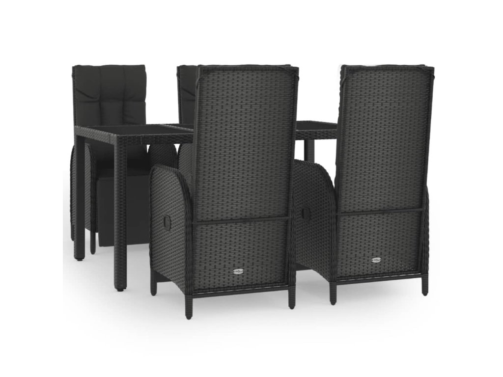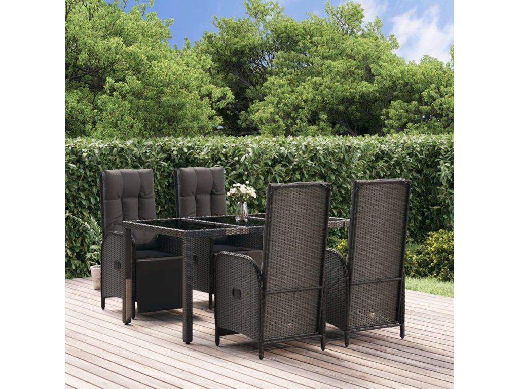 5dílný zahradní jídelní set s poduškami černý polyratan 3185061