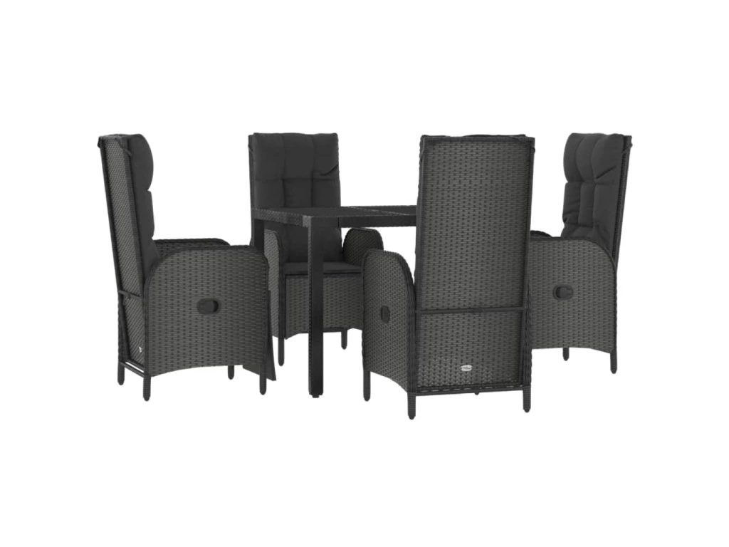 5dílný zahradní jídelní set s poduškami černý polyratan 3185065