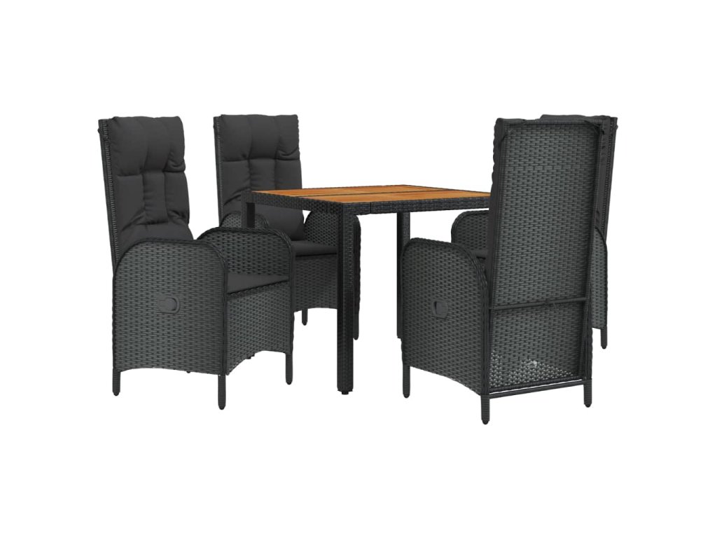 5dílný zahradní jídelní set s poduškami černý polyratan 3185069