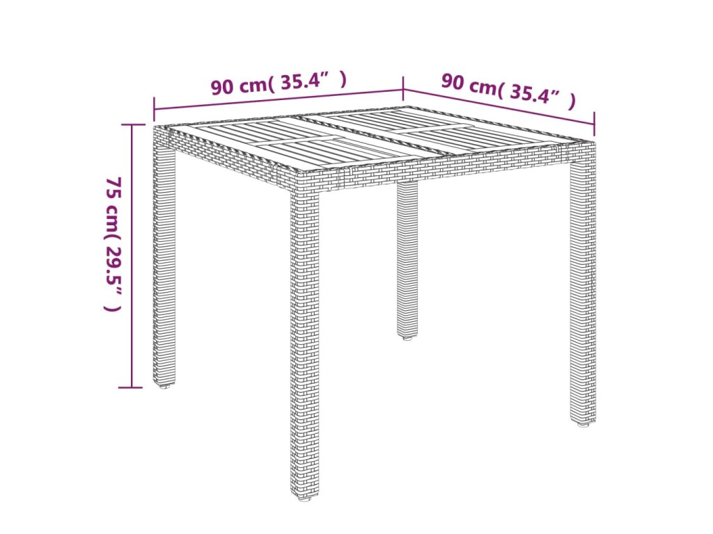 - Materiál: PE ratan, práškově lakovaná ocel, masivní akáciové dřevo s olejovou povrchovou úpravou