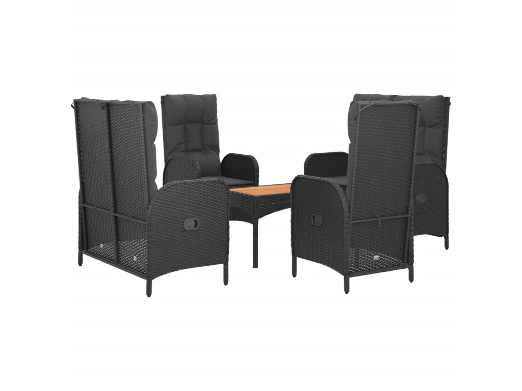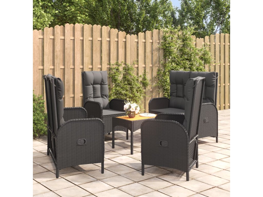 5dílný zahradní jídelní set s poduškami černý polyratan 3185088