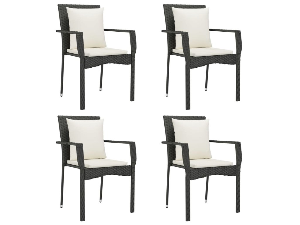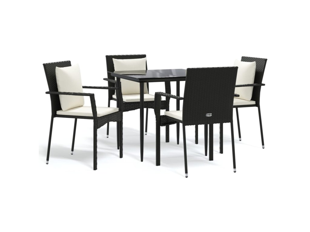 5dílný zahradní jídelní set s poduškami černý polyratan 3185096