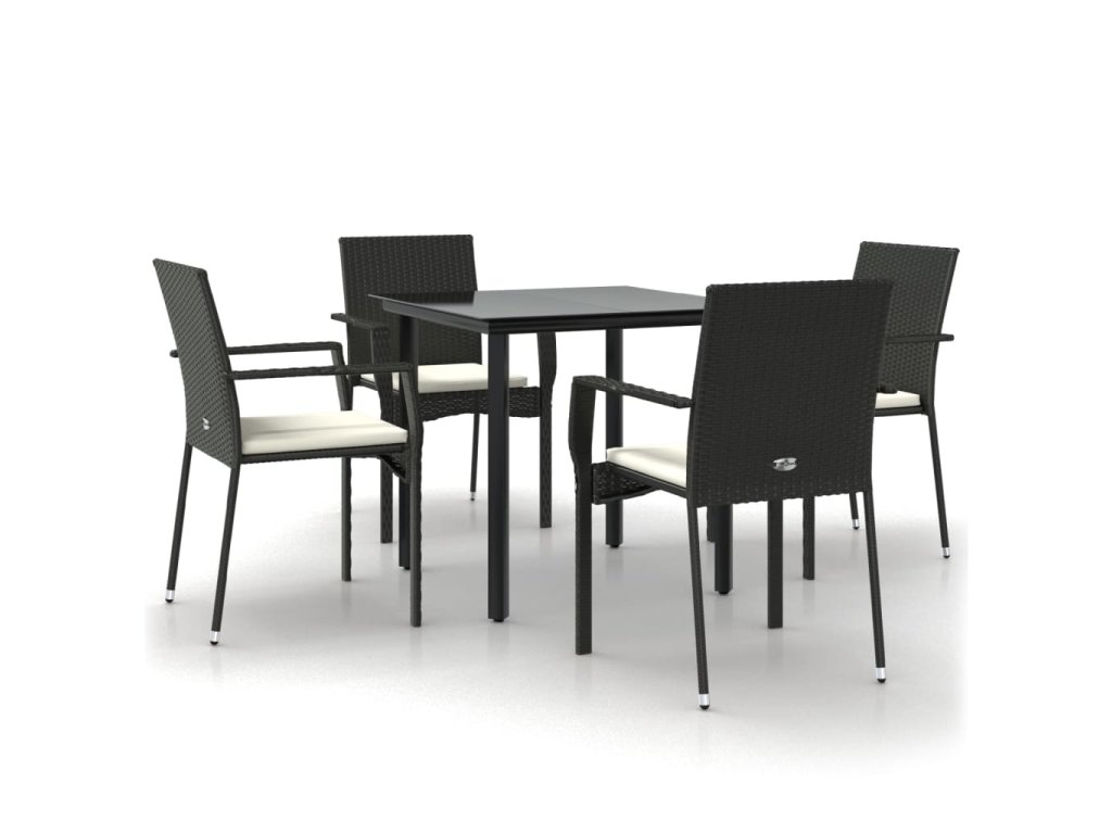 5dílný zahradní jídelní set s poduškami černý polyratan 3185132