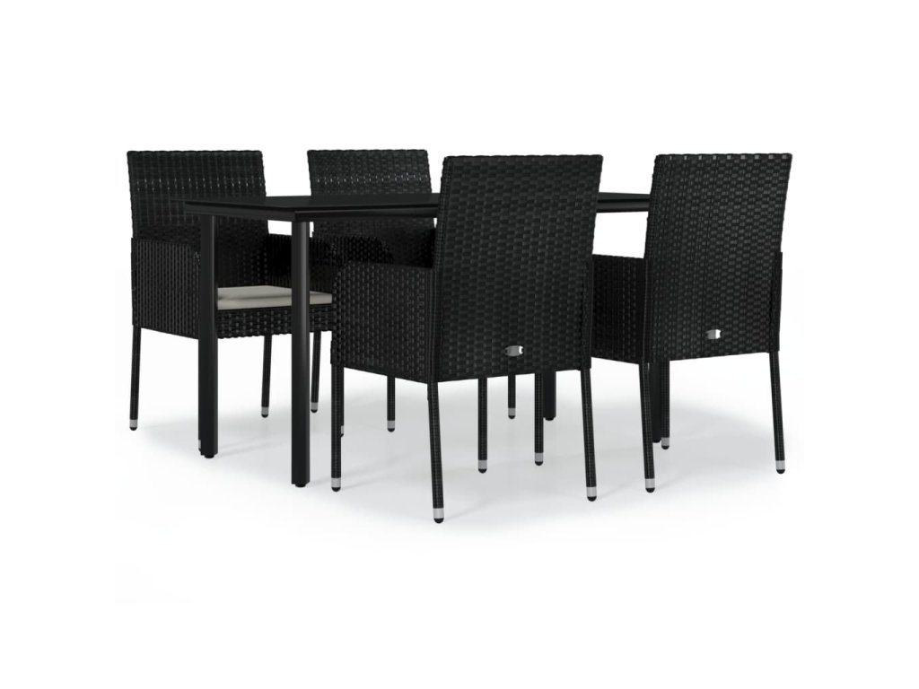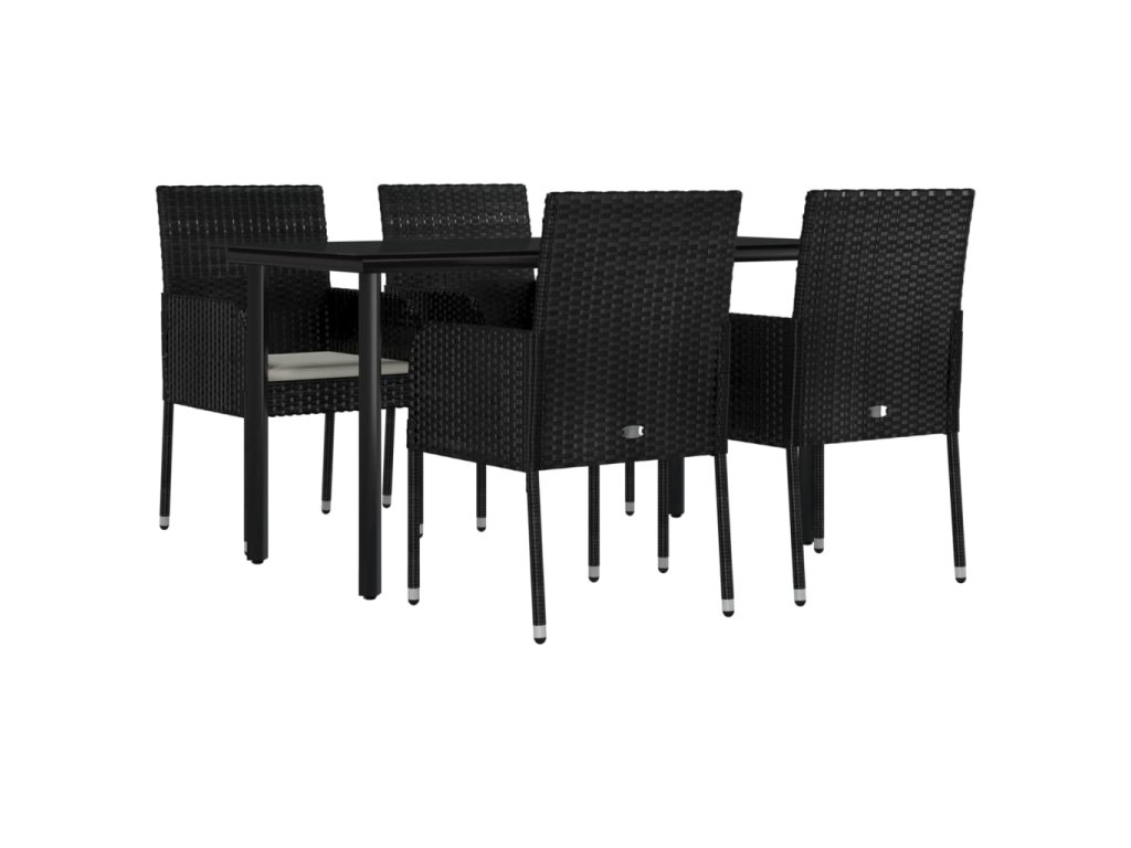 5dílný zahradní jídelní set s poduškami černý polyratan 3185157
