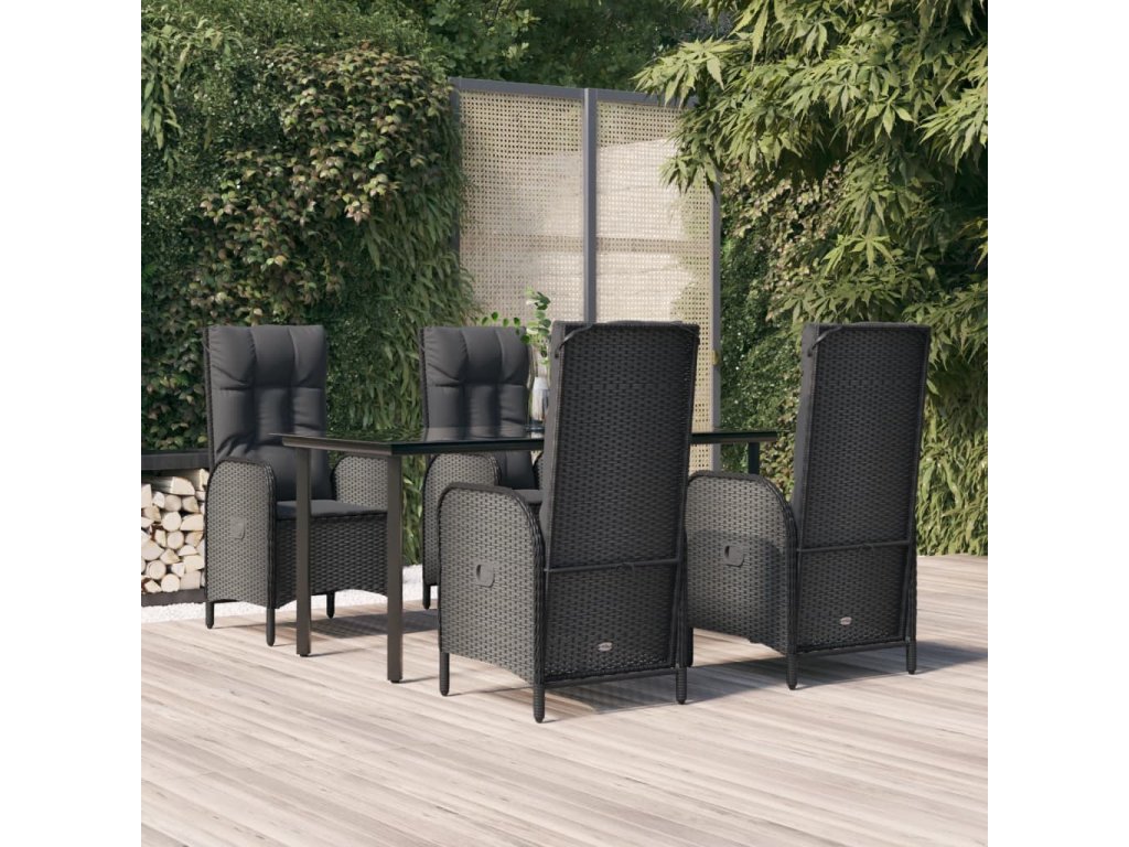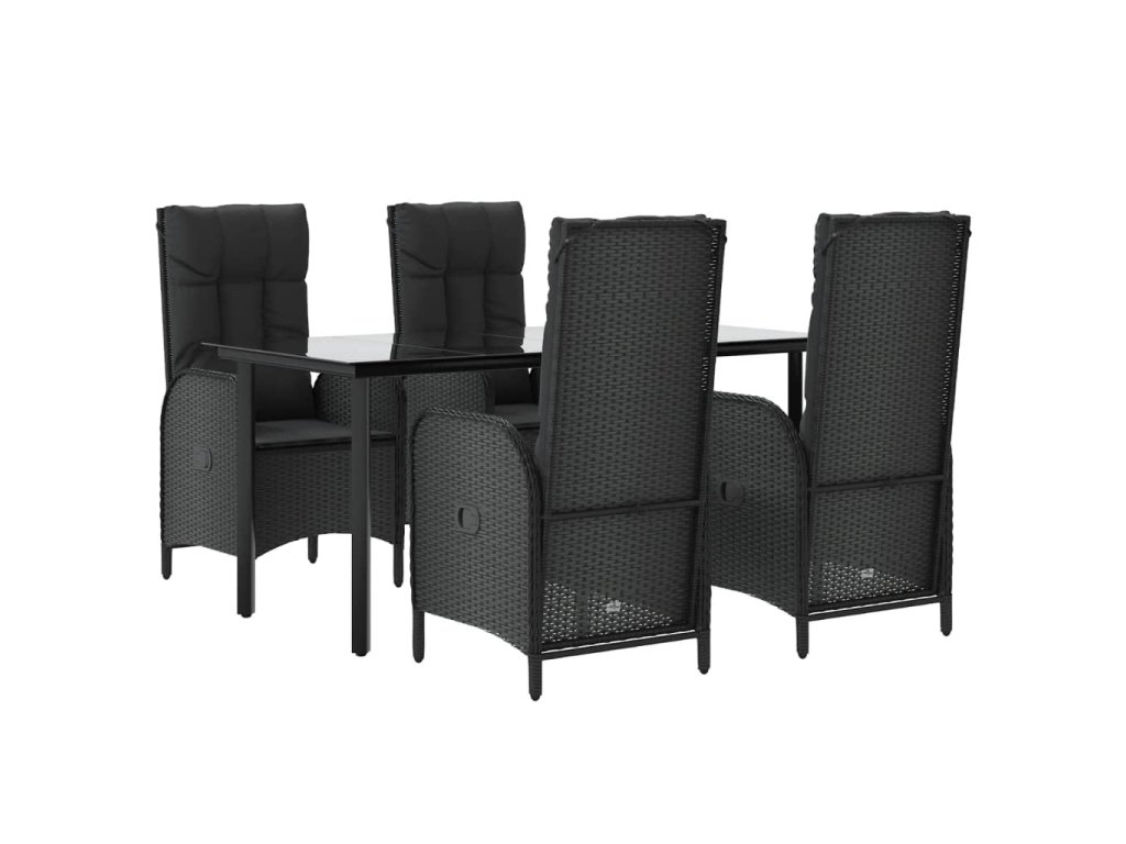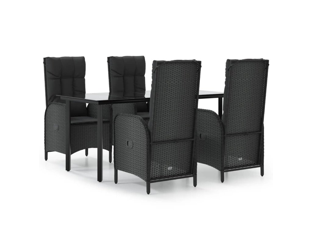 5dílný zahradní jídelní set s poduškami černý polyratan 3185191