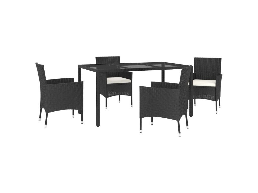5dílný zahradní jídelní set s poduškami černý polyratan 3187318