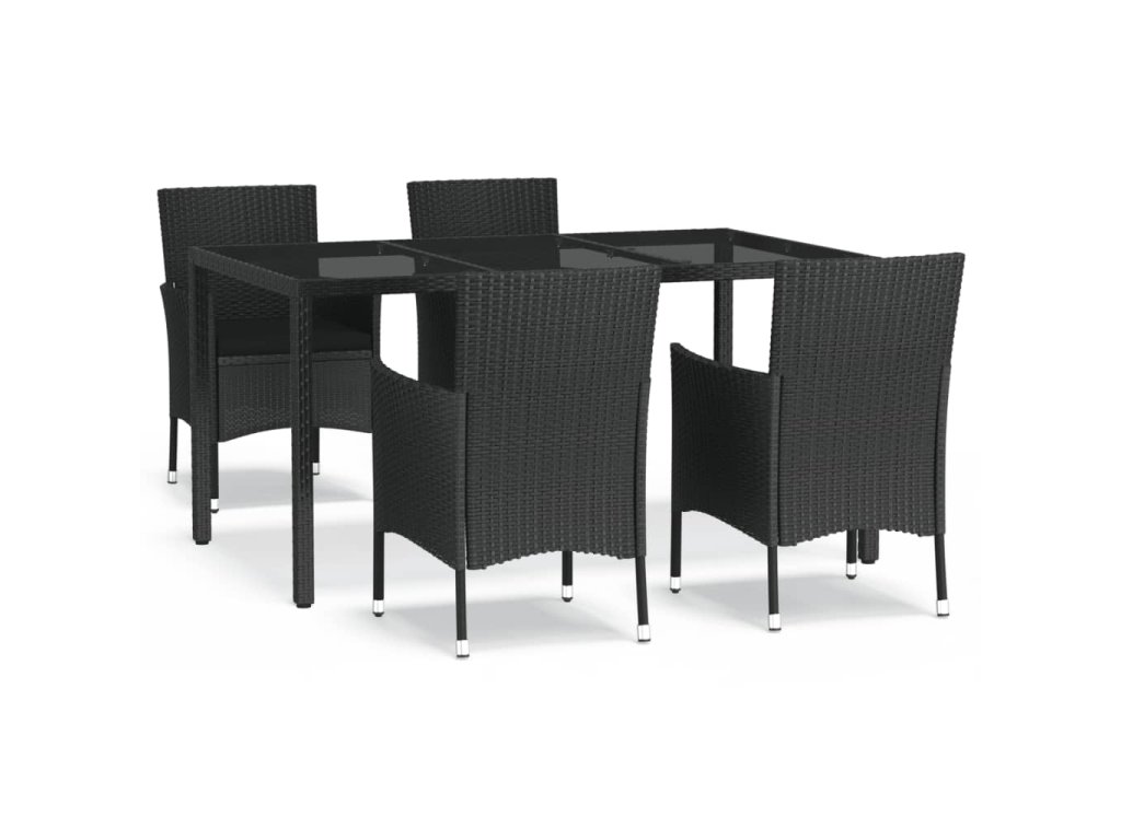 5dílný zahradní jídelní set s poduškami černý polyratan 3187326