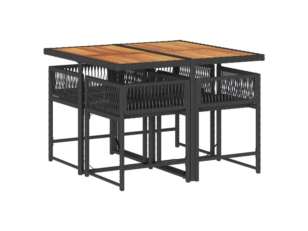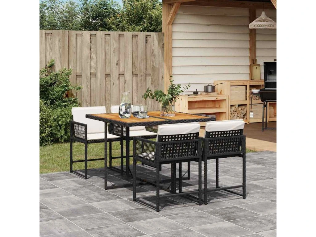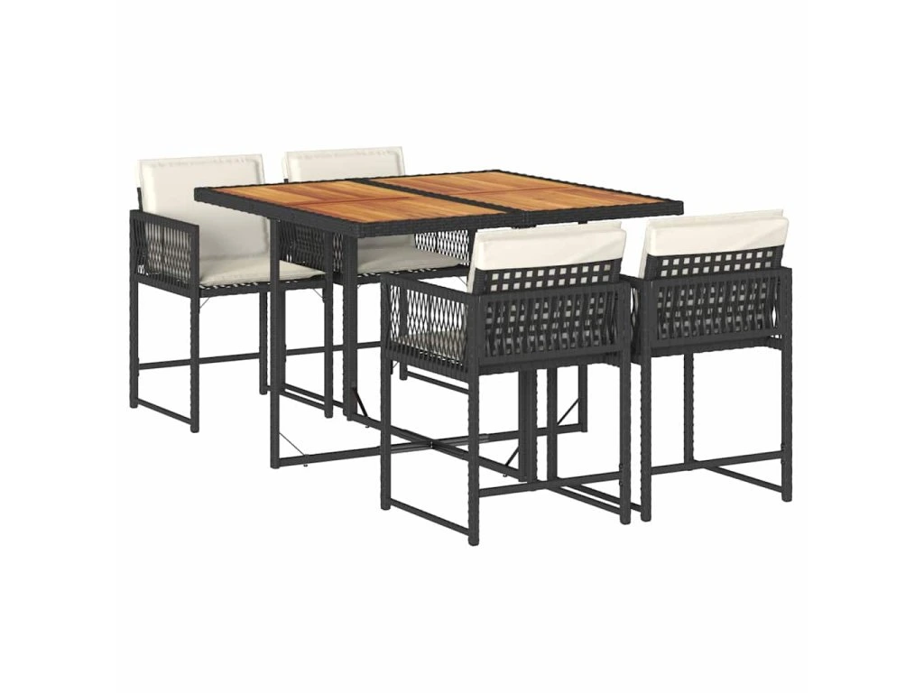 5dílný zahradní jídelní set s poduškami černý polyratan 3211443