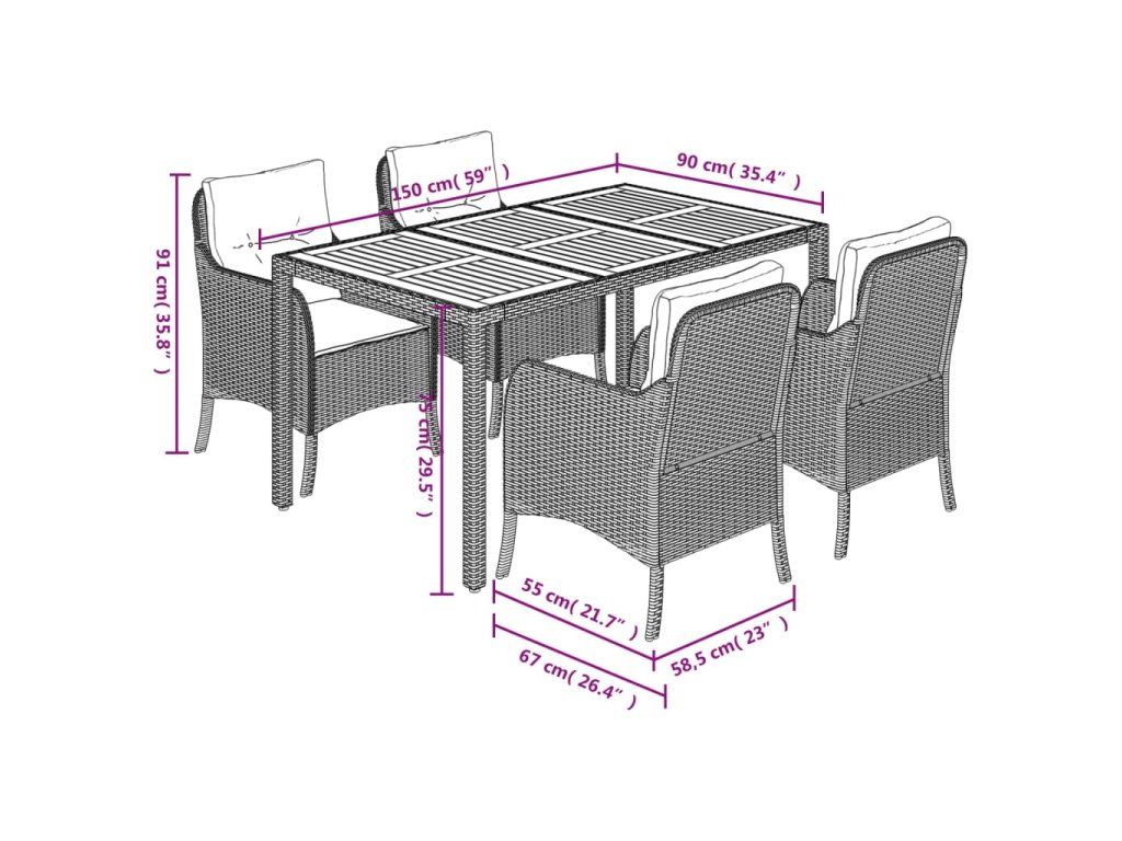 - Materiál: PE ratan, práškově lakovaná ocel, masivní akáciové dřevo s olejovou povrchovou úpravou