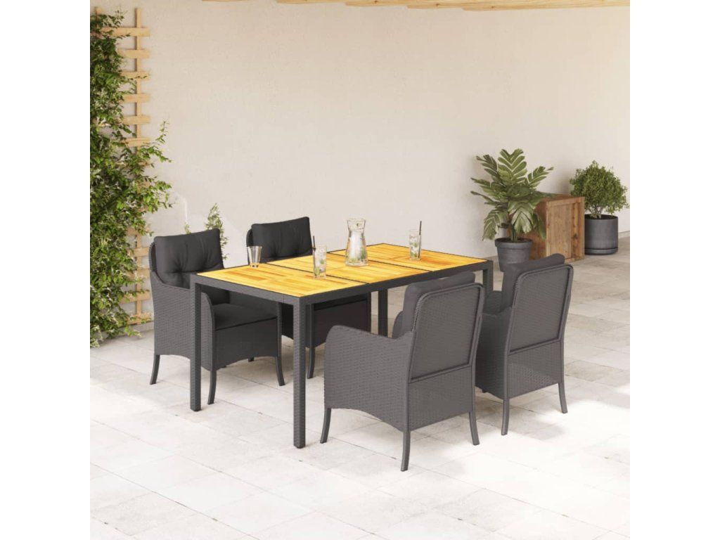 5dílný zahradní jídelní set s poduškami černý polyratan 3211868