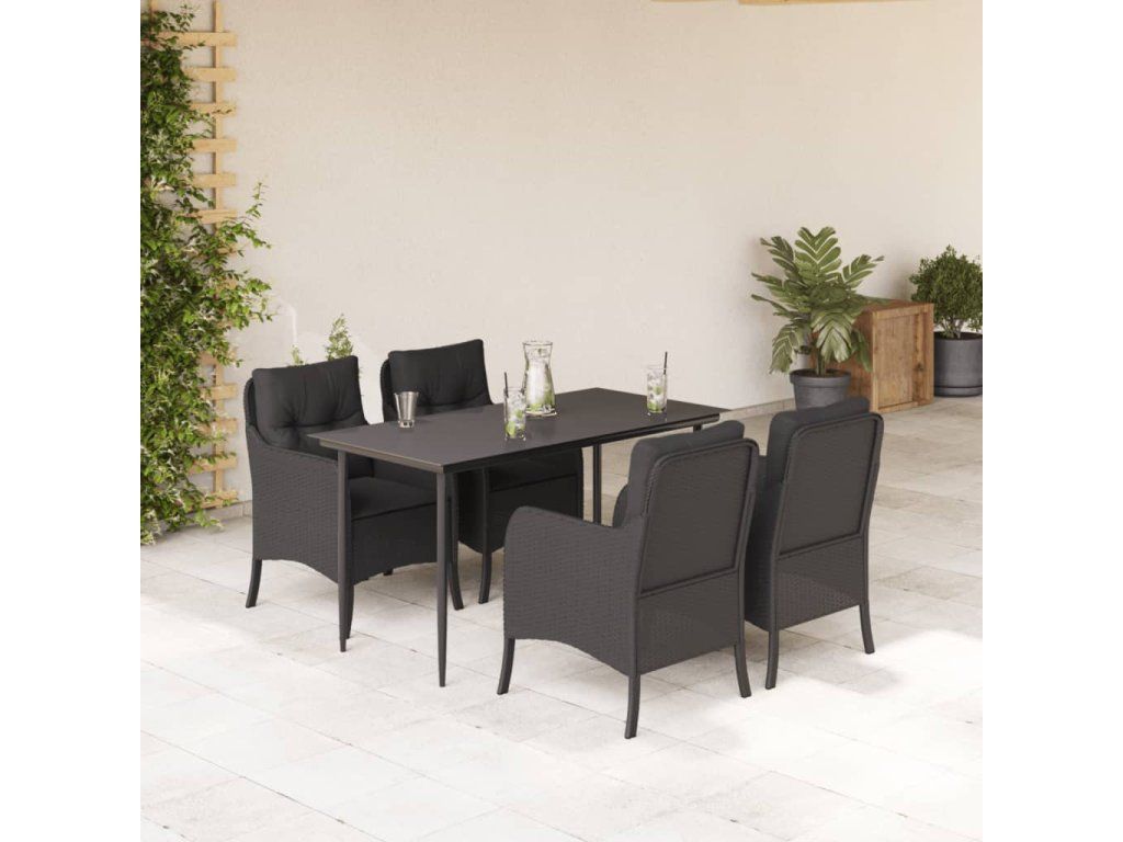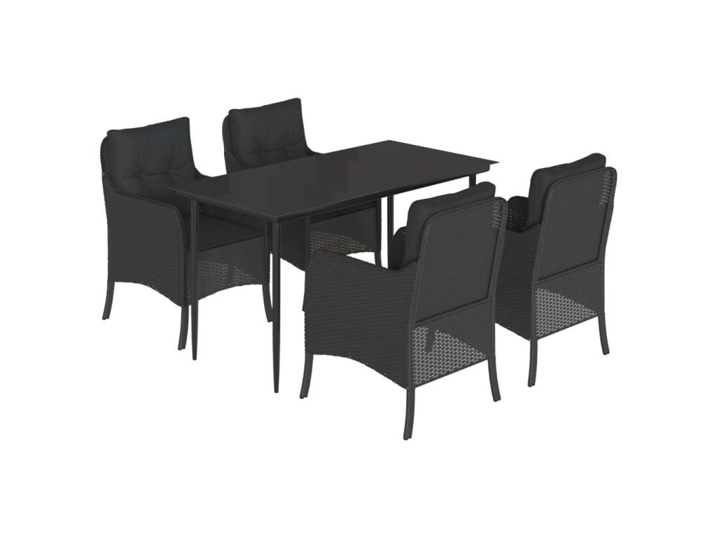 5dílný zahradní jídelní set s poduškami černý polyratan 3211922