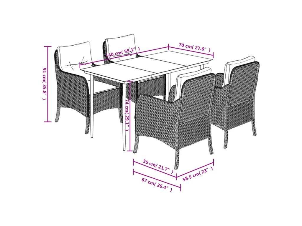 Tento zahradní jídelní set je skvělou volbou pro stolování pod širým nebem nebo jen tak pro odpočívání na zahradě, dvorku či terase.