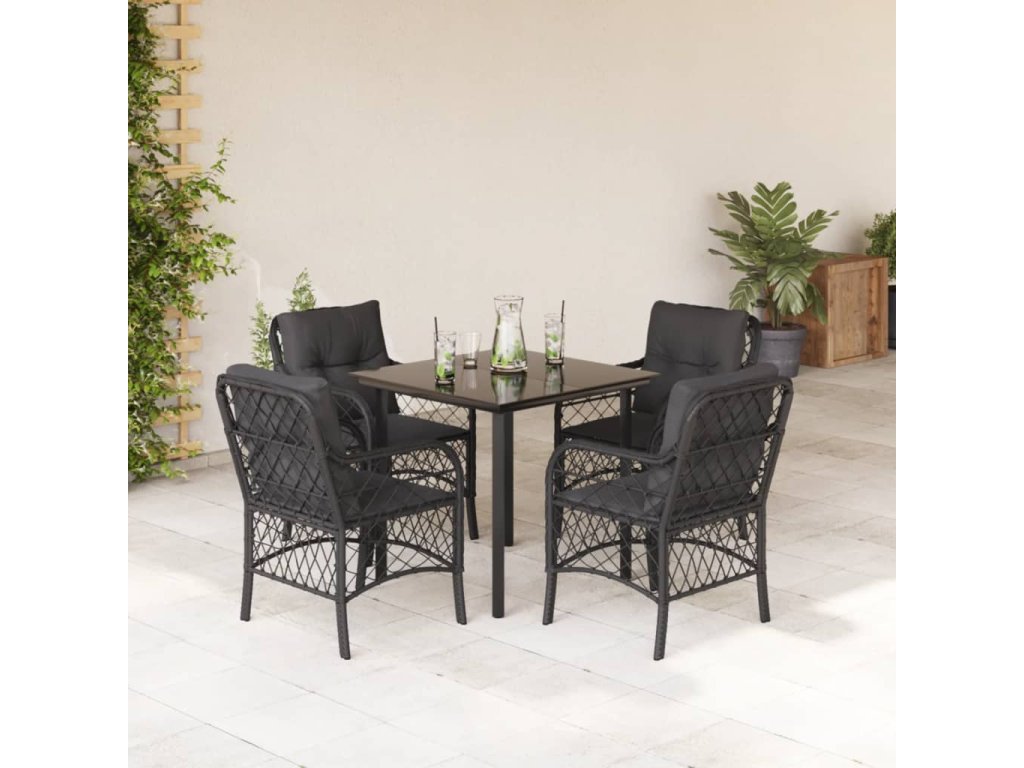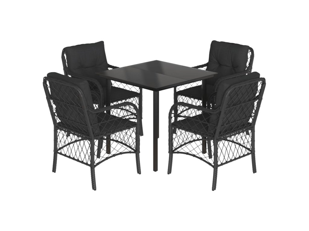 5dílný zahradní jídelní set s poduškami černý polyratan 3212104